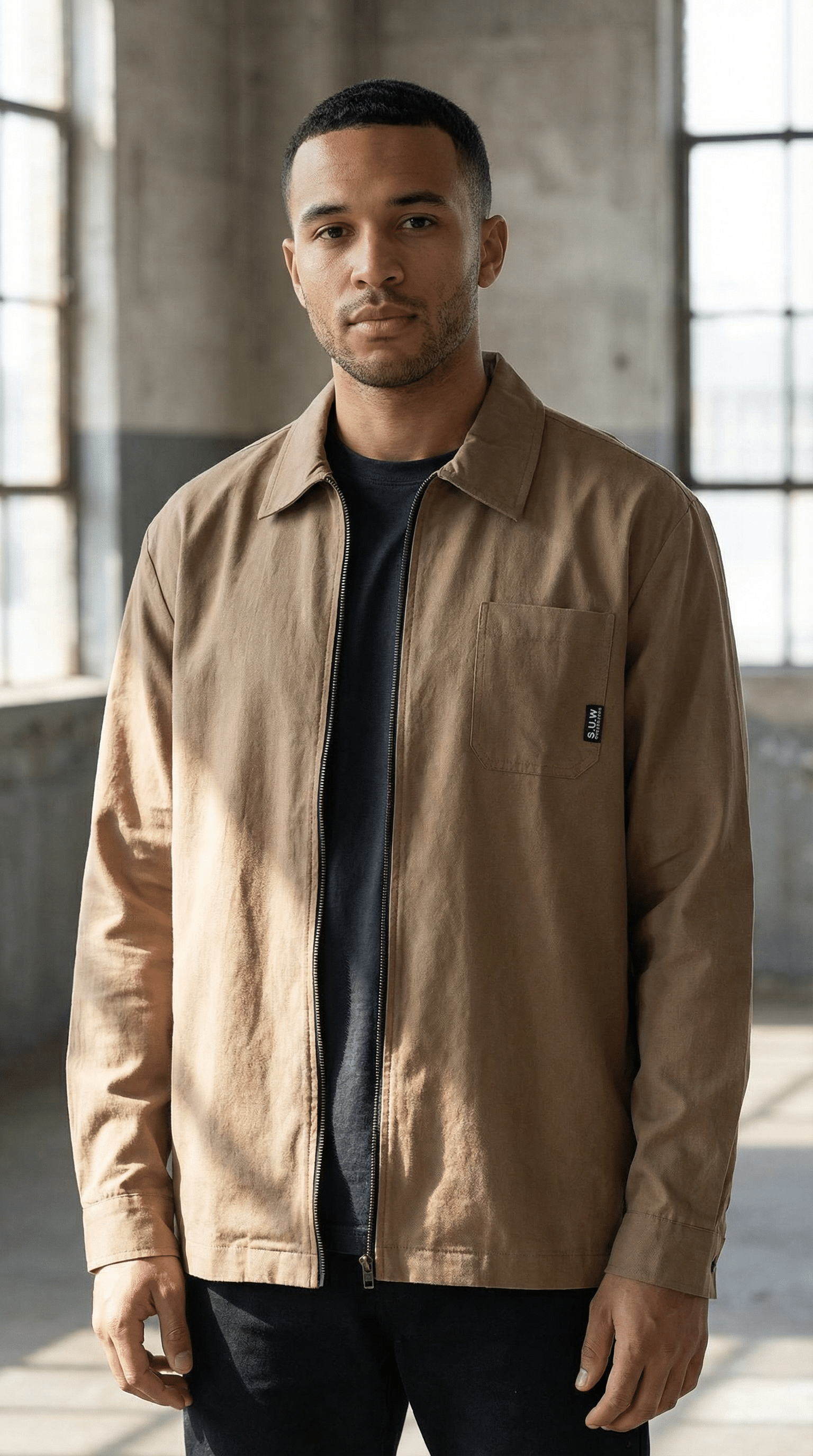 Overshirt mit durchgehendem Reißverschluss und Brusttasche